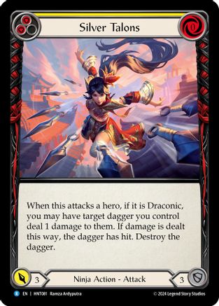 When this attacks a hero, if it is Draconic, you may have target dagger you control deal 1 damage to them. If damage is dealt this way, the dagger has hit. Destroy the dagger.