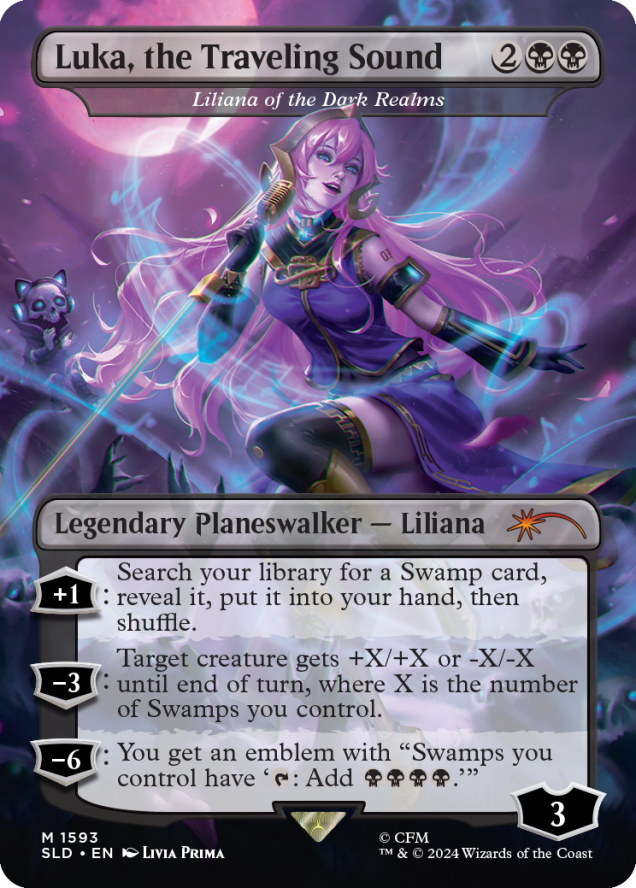 - 1x Liliana of the Dark Realms as “Luka, the Traveling Sound”